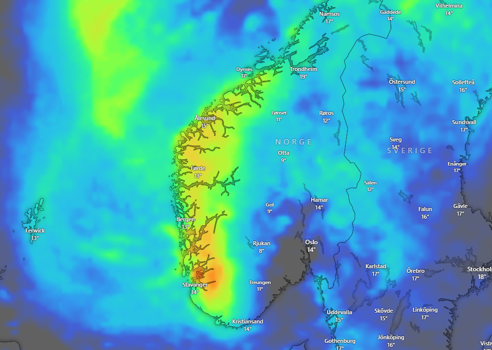 Men det er ikke bare vind som kommer med dette lavtrykket. Det er også ventet enorme nedbørsmengder, opp mot 120 millimeter de mest utsatte stedene som vil være i Rogaland og sør i Vestland, i følge de siste prognosene.